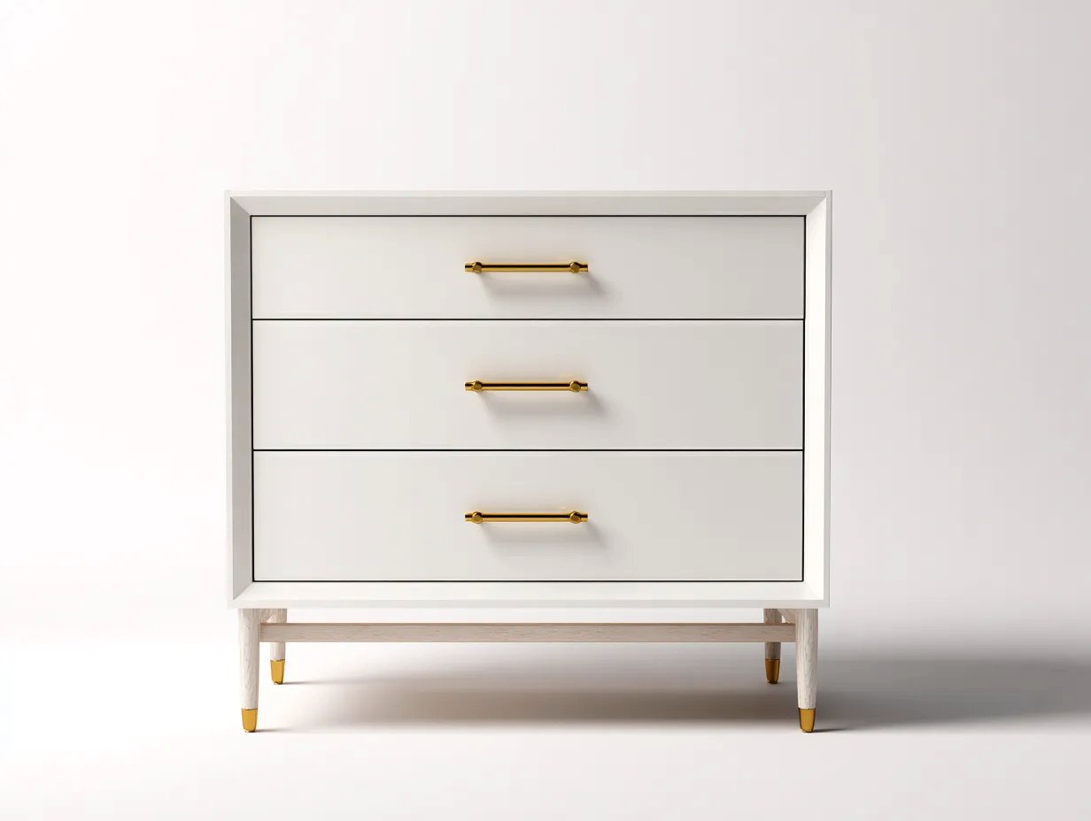 Nachttisch-Holzwerkstoff-Holz-Metall-58x40x65 cm-Weiß-Natur-Glamour Stil