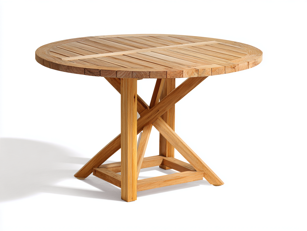 Die runde Tischform ermöglicht eine angenehme Sitzanordnung und schafft eine einladende Atmosphäre für gemeinsame Momente im Außenbereich. Die stabile Konstruktion sorgt für sicheren Stand und eignet sich für den täglichen Einsatz im Garten oder auf der Terrasse. Das natürliche Holzdesign lässt sich vielseitig mit verschiedenen Gartenstühlen kombinieren.